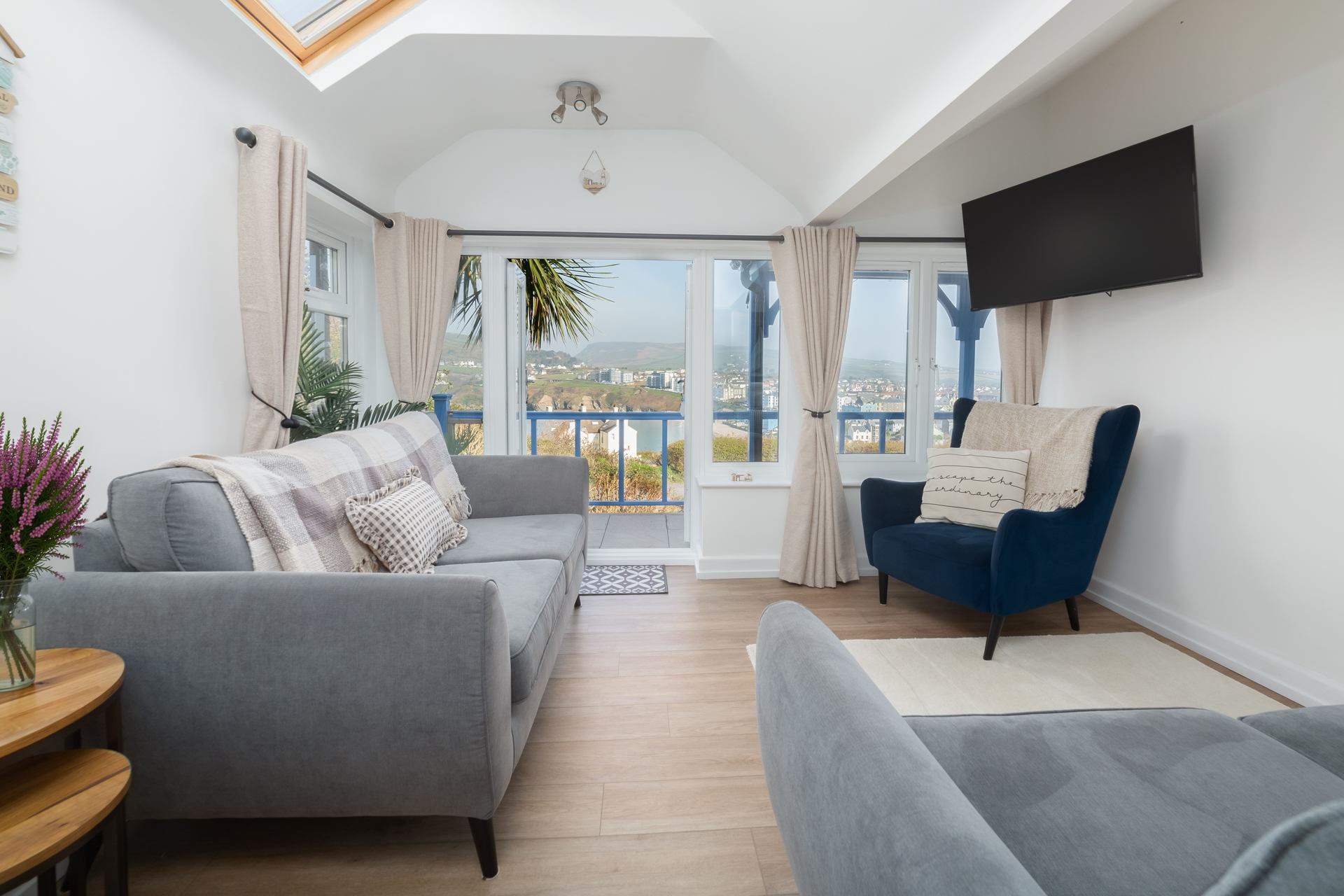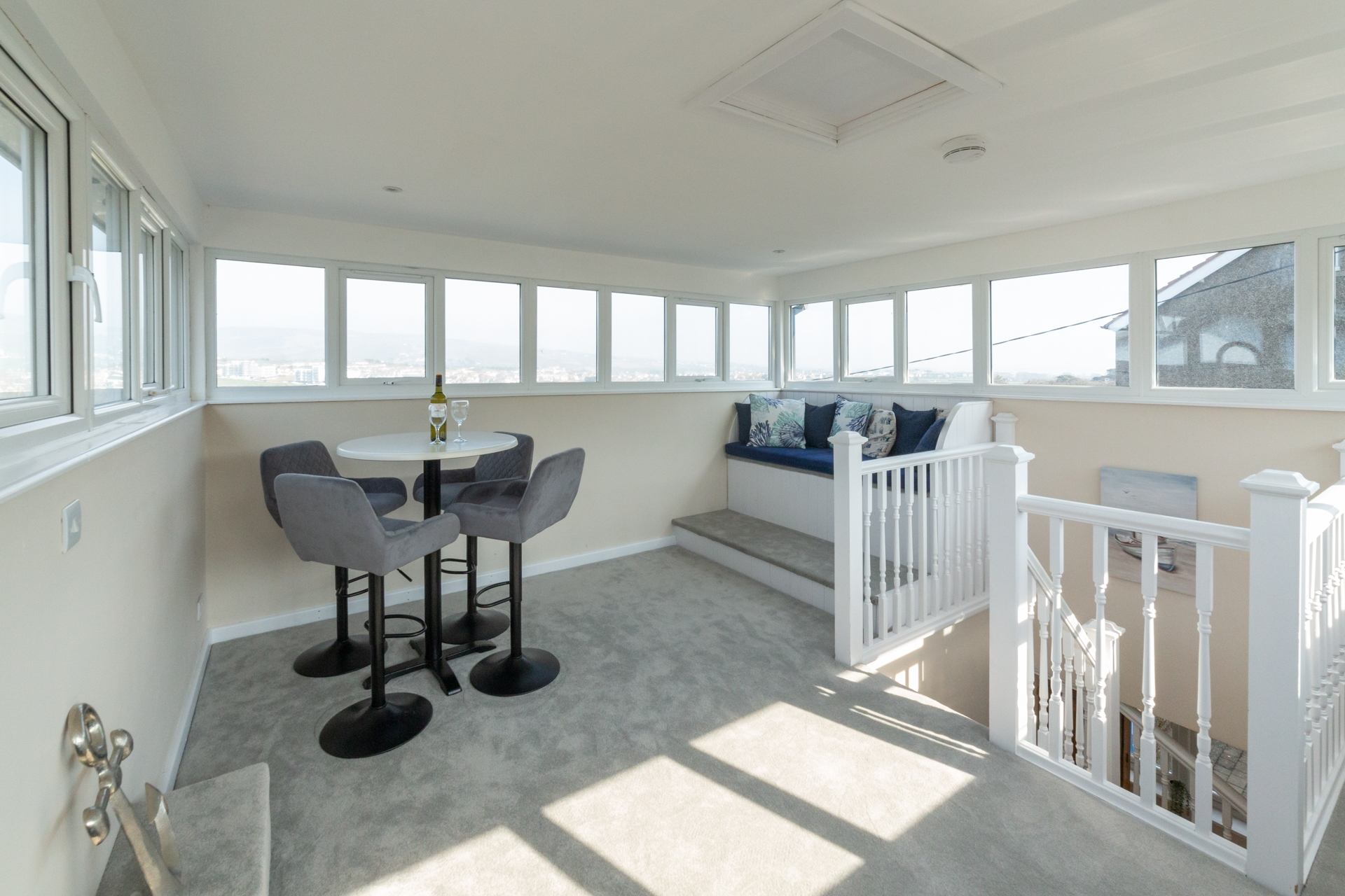 Upstairs, a bright 360 degree viewing lounge sits higher up in the house, offering sweeping panoramic views across the bay towards Bradda Head and out over the open sea. At the rear of the property you’ll find a private, sheltered sun terrace, an ideal place to enjoy a morning coffee or relax in the evening sea air. Parking is available just outside the house for up to 4 cars, and the property also benefits from its own private driveway.